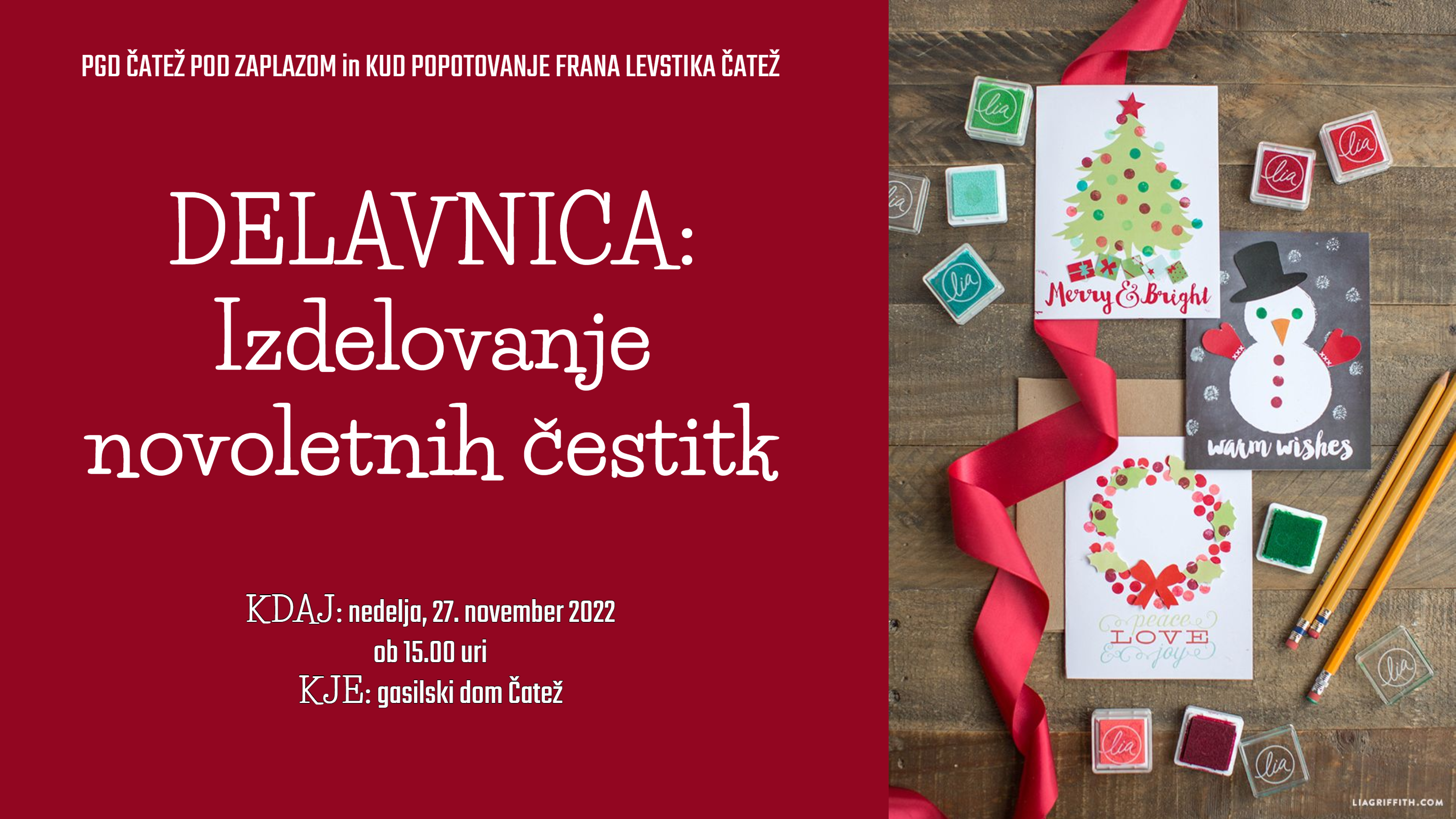 PGD Čatež in KUD Popotovanje Frana Levstika Čatež vabimo majhne in velike na ustvarjanje novoletnih voščilnic. S seboj prinesite dobro voljo in v kolikor je mogoče še škarje, lepilo ter kakšen gumb.