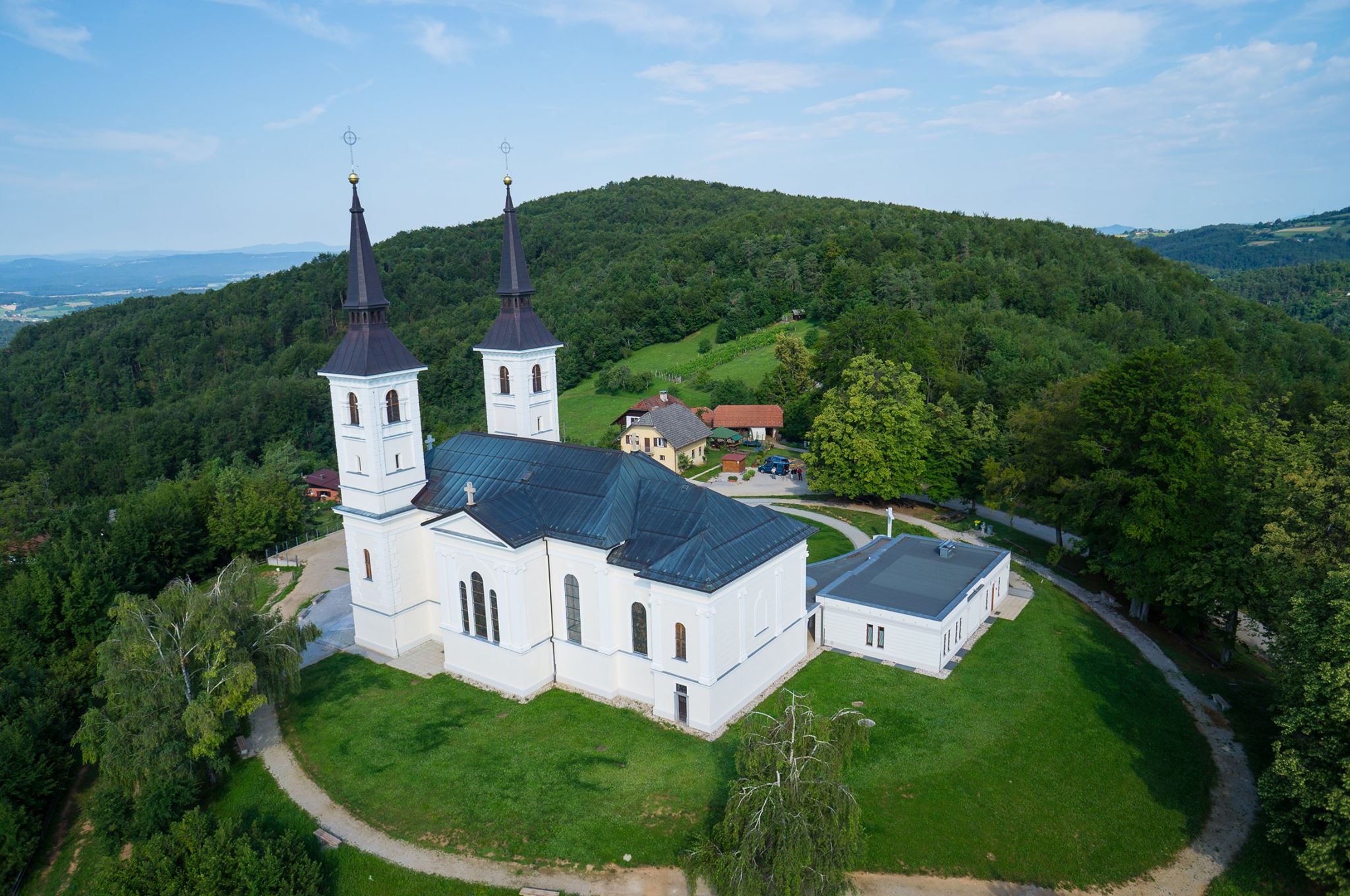 Ker se je kapelica iz vej kmalu podrla, je ključar čateške cerkve postavil na Zaplazu lesen križ. Pred letom 1808 so nato na tem mestu postavili zidano kapelico z zvonikom, na njen oltar pa postavili podobo Matere božje z detetom. Zaradi vedno večjega števila romarjev je sklenil tedanji čateški vikar Matija Košak na Zaplazu sezidati pravo cerkev. Zidava cerkve je bila končana leta 1848. V letih 1850-1851 je slikar Franz Kurz zum Thurn und Goldenstein notranjščino nove cerkve okrasil s stenskimi slikami, ki so prikazovale prizore iz Marijinega življenja. Toda cerkev je kmalu postala premajhna, zato je po letu 1866, v času župnika Jožefa Gregoriča, doživela več prezidav, ob prezbiteriju pa so pozidali dva zvonika. Vendar tudi povečana cerkev ni zadovoljevala potreb številnih romarjev. V času čateškega župnika Henrika Povšeta so leta 1906 cerkev podrli. Ohranili so le njen oltarni prostor, se pravi prezbiterij, ki so ga nekoliko povišali in obokali. Ostale dele cerkve so zgradili po načrtih ljubljanskega stavbenika Rudolfa Trea. Novo cerkev je že 14. oktobra 1917 posvetil ljubljanski škof Anton B. Jeglič, čeprav je bila gradnja popolnoma končana šele leta 1926, ko so zgradili tudi oba zvonika.